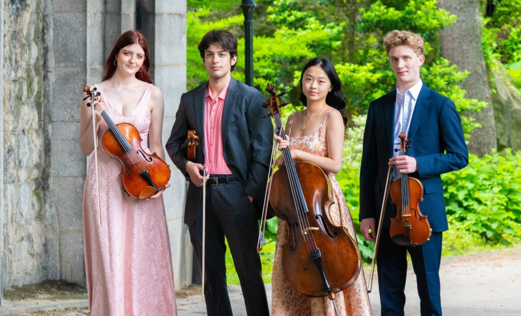 Members in alphabetical order: Chili Ekman (violin), Vanny Hu (cello), Amelia Krinke (viola), Henry Rogers (violin)