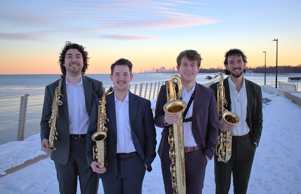 Members in alphabetical order: Matthew Johnson (tenor saxophone), Haven Kahn (baritone saxophone), Philip Kleutgens (soprano saxophone), Hudson O’Reilly (alto saxophone)