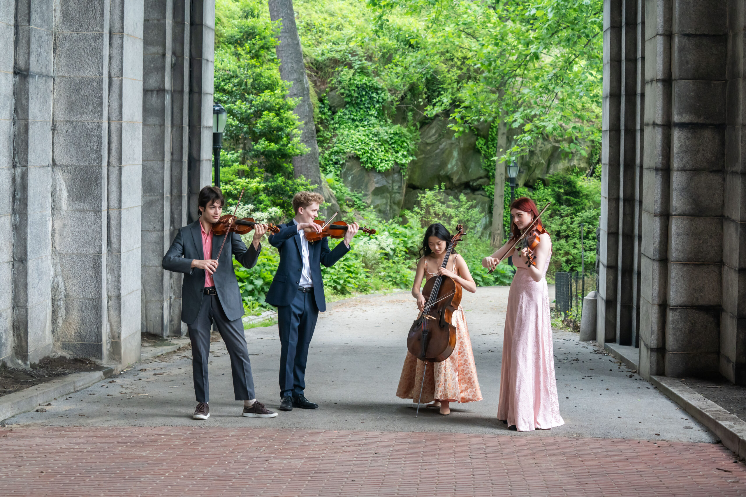 Members in alphabetical order: Chili Ekman (violin), Vanny Hu (cello), Amelia Krinke (viola), Henry Rogers (violin)