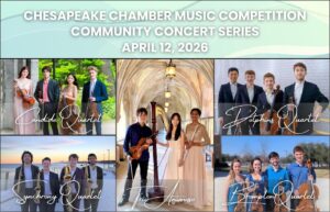 A free Community Concert Series held throughout the region featuring the finalists of the 12th Chesapeake Chamber Music Competition